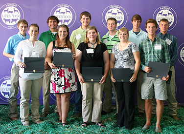 | SCHOLARSHIP WINNERS - Recipients of 2012 Michigan Youth Livestock Scholarships were honored at the 2012 Michigan Livestock Expo, July 17 in East Lansing: (front row, from left) Sarah Kennedy, Elizabeth Oliver, Marie Bennett, Laryssa Bates, Marc Reed; (back row) Logan Bracy, Jay Louman, Garrett Slavik, Jake Sloan, Bryant Chapman and Ben Ross. |